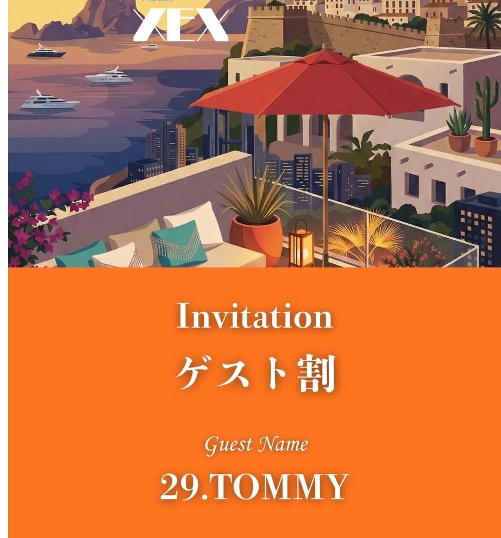 ※通常料金は男女一律4,000ですがゲスト:TOMMY(とみー)の写真提示で上記3,000円の割引金額となります♪