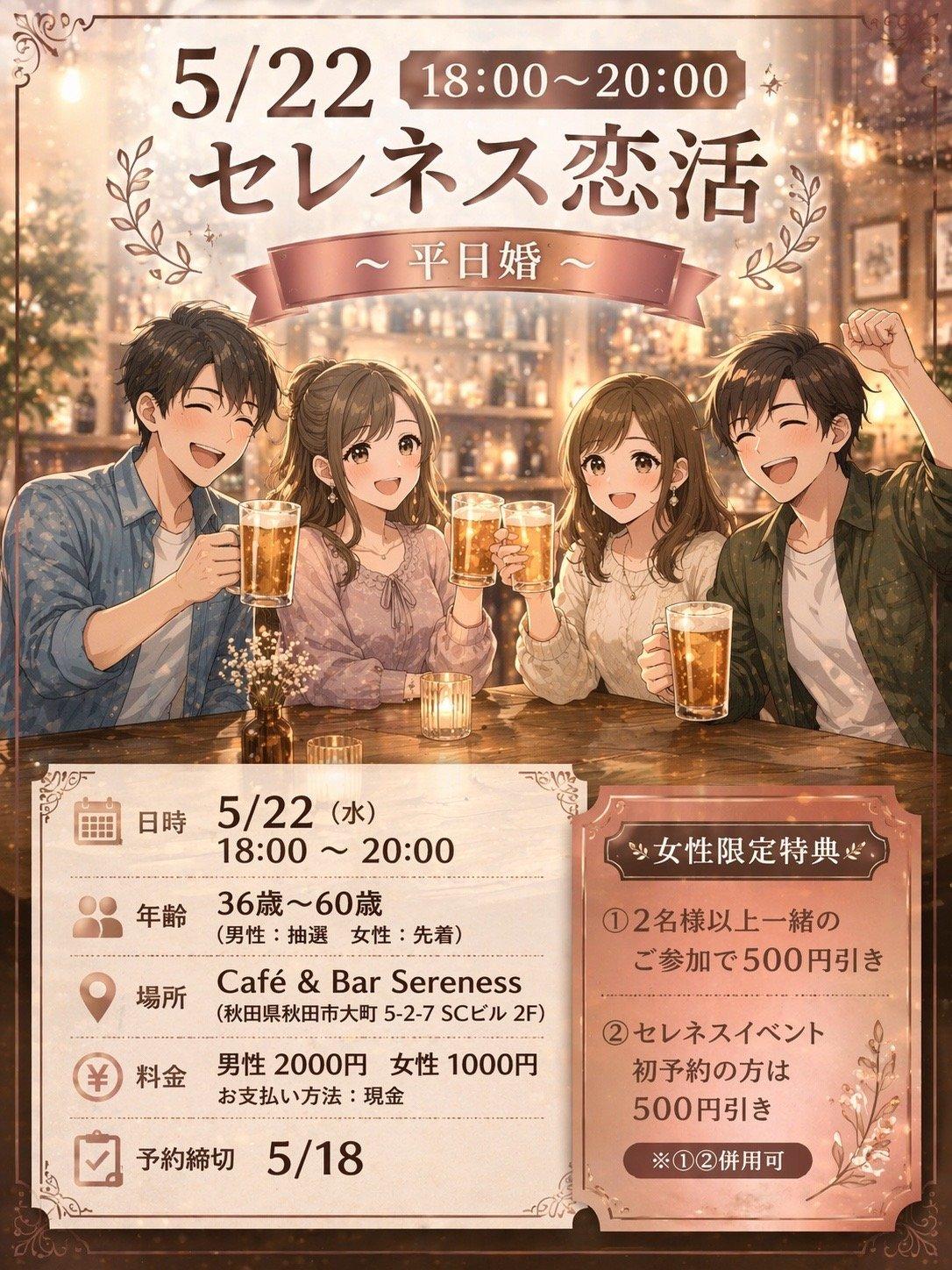 「Café & Bar Sereness」で利用できる、550円割引チケット進呈????