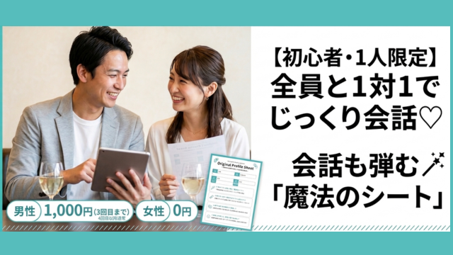 さらに、連絡先交換は自由! トークの終盤にスタッフが交換のタイミングをアナウンスしますので、切り出すのが苦手な方も安心です。この一期一会のチャンスを、ぜひ素敵な未来へ繋げてください。