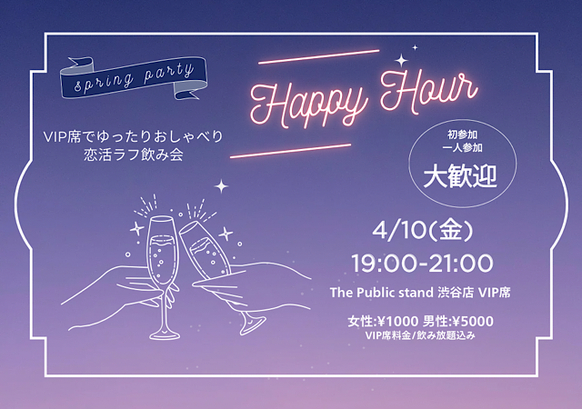 【4/10(金)19:00-渋谷】VIP席でまったり恋活飲み会