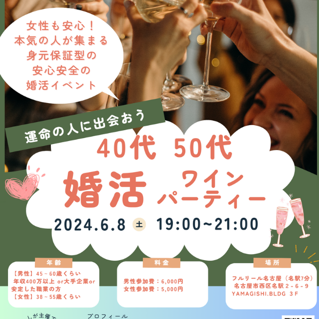 受付(11:30~) ・名前の確認 ・プロフィールカード、アプローチカード、ビンゴカード、番号札を受け取る 2.開会 3.ファーストインプレッション(20分) ・司会の進行で行う。 ・司会より呼ばれた人(番号順)から名前と一言を言う。 4.アプローチカード記入および集計(10分) ・司会より説明 ・男性と女性別々のBOXでカードを回収 5.テーブルごとでフリートーク(30分) ・青年部はテーブルの様子を見て、盛り上がっていないテーブルのサポート 6.アトラクション(30分) ・司会よりルール説明 ・青年部は、ルールを理解できていない参加者へ説明 ・ビンゴ大会を行います。ビンゴ達成者は第一候補のかたを10分間独占できる時間がもらえる。 7.フリートーク(30分) ・青年部は男女でコミュニケーションをとれていない人に声を掛けて目当ての人を聞き案内 8.アプローチカード記入・集計(20分) ・司会より説明 ・男性と女性別々のBOXでカードを回収 ・マッチングカップルを選出 9.フリートーク(20分) ・青年部は男女でコミュニケーションをとれていない人に声を掛けて目当ての人を聞き案内 10.結果発表(10分) ・司会より説明 ・8のアプローチカードで両想いのカップルを司会者より発表。 11.マッチング者に景品(10分) ・司会より説明 ・10でマッチングしたカップルは景品BOXからカードを引き、記載された景品を受け取る。 12.アタックターイム!!(20分) ・司会より説明 ・10でマッチングしなかった男性もしくは女性は挙手制でステージで愛の告白ができる。 ・指名された男性もしくは女性に対し、他の人も同時にアタックができる。 13.閉会 |