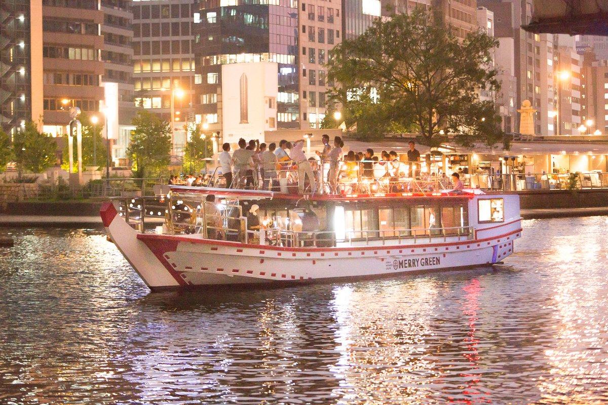 船からの中之島周辺のライトアップ夜景とお酒で素敵な雰囲気を楽しんで頂けますよ♪